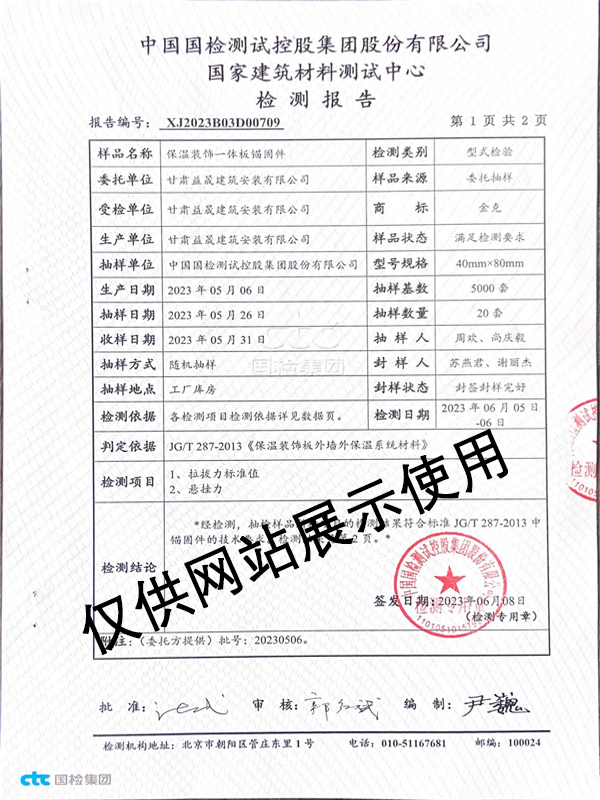 甘肃益晟建筑安装有限公司一体板配件检测资质
